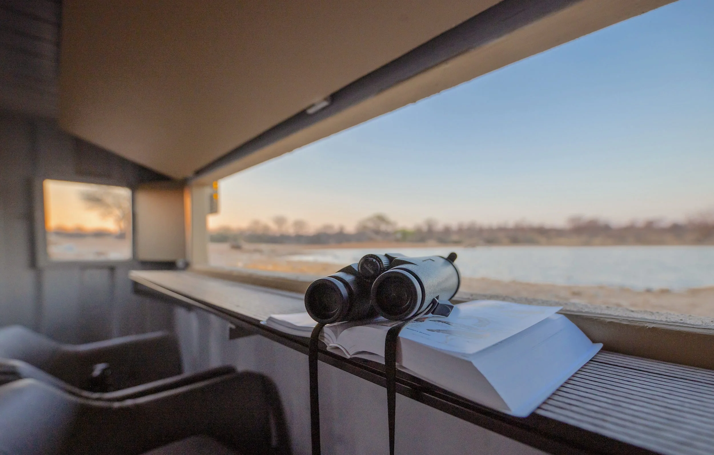 The floating boma and the entire main lodge, both upstairs and downstairs, offer uninterrupted views of the breathtaking surroundings. Conceived by German-born Stefan Breuer, affectionately known as the “barefoot bushman,” the elevated boma overlooks the Leopard River and the expansive plains beyond. This remarkable setting provides the perfect backdrop for socializing, whether over a candlelit dinner or gathered around a fire beneath a canopy of stars.